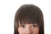 portret młodej kobiety na białym tle na czarnym tle