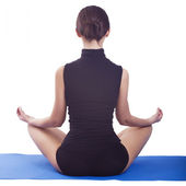 piękna młoda kobieta robi ćwiczenia jogi, na białym tle