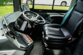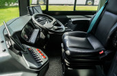 Intercity bus deska rozdzielcza wyposażona w monitor systemu nadzoru wideo. kierownica i deska rozdzielcza autobusu elektrycznego