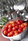 umyte pomidory w durszlak ze stali nierdzewnej, restauracja szczegół serii