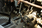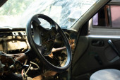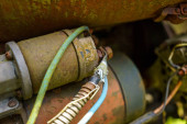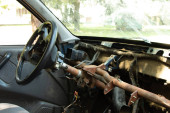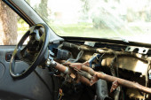 stary zepsuty samochód stoi na słońcu, samochód na złomowisku