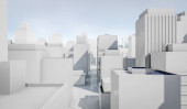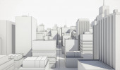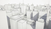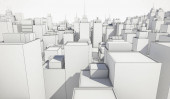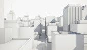 Białe tło miasta. Wiele budynków. Ilustracja renderowania 3D.