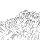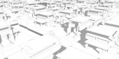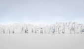 Białe tło miasta. Wiele budynków. Ilustracja renderowania 3D.