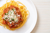 spaghetti wieprzowina bolognese lub spaghetti z mielonym sosem pomidorowym wieprzowym - włoski styl żywności