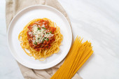 Zdjęcie "spaghetti wieprzowina bolognese lub spaghetti z mielonym sosem pomidorowym wieprzowym - włoski styl żywności" może być wykorzystywane do celów osobistych i komercyjnych zgodnie z warunkami zakupionej licencji Royalty-free. Obraz jest dostępny do pobrania w jakości wysokiej rozdzielczości do 5760x3840.