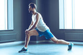 Zdjęcie "Człowiek robi ćwiczenia rozciągające" może być wykorzystywane do celów osobistych i komercyjnych zgodnie z warunkami zakupionej licencji Royalty-free. Obraz jest dostępny do pobrania w jakości wysokiej rozdzielczości do 5760x3840.