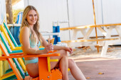Zdjęcie "Wspaniała brunetka model bikini cieszy się lodami podczas relaksu w wiosennej pogodzie" może być wykorzystywane do celów osobistych i komercyjnych zgodnie z warunkami zakupionej licencji Royalty-free. Obraz jest dostępny do pobrania w jakości wysokiej rozdzielczości do 5760x3840.