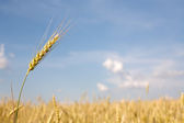 Złote kolce Pszeniczysko nad niebieski niebo i chmury