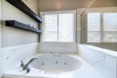 Zdjęcie "Wewnątrz łazienki z widokiem na ręczniki i wanna prysznic zestaw combo" może być wykorzystywane do celów osobistych i komercyjnych zgodnie z warunkami zakupionej licencji Royalty-free. Obraz jest dostępny do pobrania w jakości wysokiej rozdzielczości do 5760x3840.