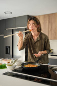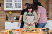 Zdjęcie "Młoda kobieta wyjaśnia przepis i nagrywa wideo ze smartfonem dla swojego kanału gotowania. Twórca treści i influencer." może być wykorzystywane do celów osobistych i komercyjnych zgodnie z warunkami zakupionej licencji Royalty-free. Obraz jest dostępny do pobrania w jakości wysokiej rozdzielczości do 5760x3840.