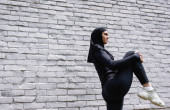 Zdjęcie "Młoda afrykańska sportowiec biegnie w pobliżu betonowej ściany z cieniem na miejskiej ulicy " może być wykorzystywane do celów osobistych i komercyjnych zgodnie z warunkami zakupionej licencji Royalty-free. Obraz jest dostępny do pobrania w jakości wysokiej rozdzielczości do 5760x3840.