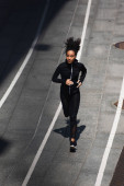 Zdjęcie "Afrykański biegacz w czarnej kurtce sportowej odwraca wzrok podczas biegania na świeżym powietrzu " może być wykorzystywane do celów osobistych i komercyjnych zgodnie z warunkami zakupionej licencji Royalty-free. Obraz jest dostępny do pobrania w jakości wysokiej rozdzielczości do 5760x3840.