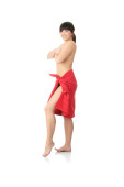 kobieta nago pokryta czerwony ręcznik, na białym tle