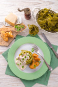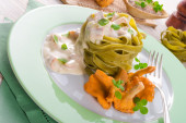 Zdjęcie "Szpinak Tagliatelle z Pieprznik jadalny" może być wykorzystywane do celów osobistych i komercyjnych zgodnie z warunkami zakupionej licencji Royalty-free. Obraz jest dostępny do pobrania w jakości wysokiej rozdzielczości do 5760x3840.