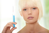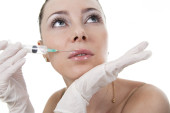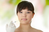 kobieta zaczyna wstrzykiwanie botoksu, patrząc zrelaksowany