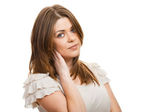 piękna młoda kobieta w elegancki czarny strój czy makijaż na białym tle na białym tle