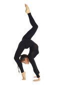 Studio fotografii młodych profesjonalnych gimnastyczne stwarzające na białym tle