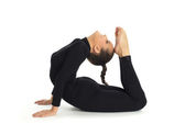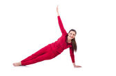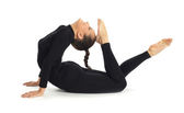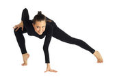 Studio fotografii młodych Professional gimnastyczne, pozowanie, siedząc w Splicie na białym tle