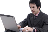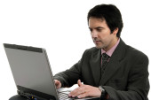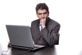 młody mężczyzna pracujący z jego komputera osobistego