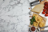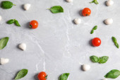 Zdjęcie "Pyszne świeże pomidory na szarym stole, płaskie układanki. Miejsce na tekst" może być wykorzystywane do celów osobistych i komercyjnych zgodnie z warunkami zakupionej licencji Royalty-free. Obraz jest dostępny do pobrania w jakości wysokiej rozdzielczości do 5760x3840.