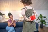 Zdjęcie "Córka z czerwonym pudełkiem i radosną matką" może być wykorzystywane do celów osobistych i komercyjnych zgodnie z warunkami zakupionej licencji Royalty-free. Obraz jest dostępny do pobrania w jakości wysokiej rozdzielczości do 5760x3840.