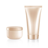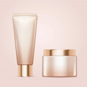 Wektorowy obraz tła ilustrujący zestaw kosmetyków w różnych pojemnikach