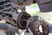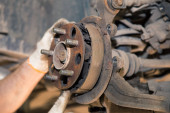 Piasta zawieszenia i tylny zacisk są stare i zardzewiałe.