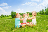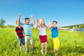 szczęśliwy pięcioro dzieci z balonów Uruchom w polu