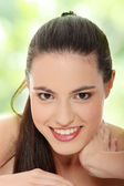 portret atrakcyjne dziewczyny bez makijażu, na białym tle