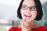 młoda kobieta szczęśliwy, na białym tle