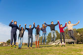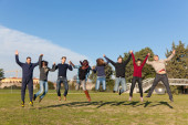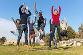 Zdjęcie "Grupa studentów szczęśliwy, skoki w parku" może być wykorzystywane do celów osobistych i komercyjnych zgodnie z warunkami zakupionej licencji Royalty-free. Obraz jest dostępny do pobrania w jakości wysokiej rozdzielczości do 5760x3840.