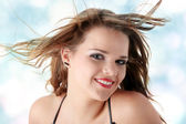 kobieta nastolatek portret ścianę zieleni