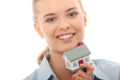 piękna kobieta z domu model na białym tle