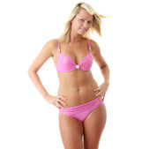lato dziewczynę w strój kąpielowy różowy, na białym tle