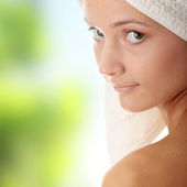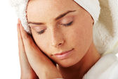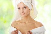 portret 20-25 lat stara kobieta piękne sobie szlafrok, na białym tle