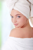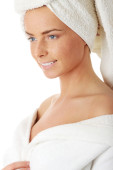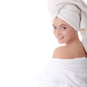 portret 20-25 lat stara kobieta piękne sobie szlafrok, na białym tle