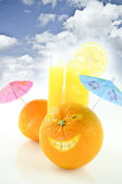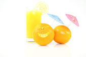 pomarańcze świeżości z uśmiechem soku na białym tle