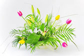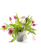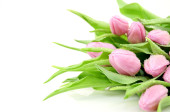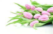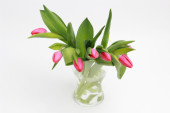 bukiet spadek różowe tulipany w wazonie na białym tle