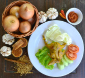 Zdjęcie "Tajska Kuchnia Wędzone krewetki chili dip z warzywami i czosnkiem na białym naczyniu" może być wykorzystywane do celów osobistych i komercyjnych zgodnie z warunkami zakupionej licencji Royalty-free. Obraz jest dostępny do pobrania w jakości wysokiej rozdzielczości do 5760x3840.