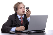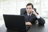 młody mężczyzna pracujący z jego komputera osobistego