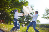 Zdjęcie "para zabawy poduszkę walki" może być wykorzystywane do celów osobistych i komercyjnych zgodnie z warunkami zakupionej licencji Royalty-free. Obraz jest dostępny do pobrania w jakości wysokiej rozdzielczości do 5760x3840.