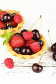 Smaczne tartlets z jagody na drewnianym stole