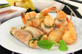różne tajskie specjały z chili dip