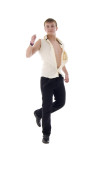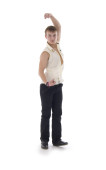 agresywne chłopiec. Studio strzelać na białym tle.