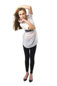 długie nogi spaceru uroda moda dziewczyna. Studio strzelać na białym tle.
