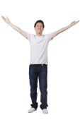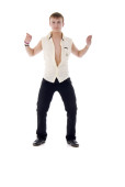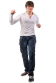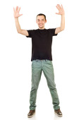 portret współczesnego młodego człowieka przystojny z otwarte ramiona.