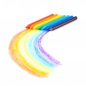 Wielokolorowe tęczowe pióra wyizolowane na białym tle