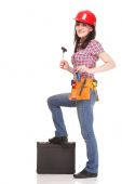 Zdjęcie "Konstruktor kobieta z narzędziami na białym tle" może być wykorzystywane do celów osobistych i komercyjnych zgodnie z warunkami zakupionej licencji Royalty-free. Obraz jest dostępny do pobrania w jakości wysokiej rozdzielczości do 5760x3840.
