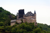 Widok z lasu do zamku Eltz koło Koblencji w Niemczech