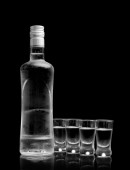 kieliszek wódki z ogórka kiszonego, na białym tle na czarnym tle